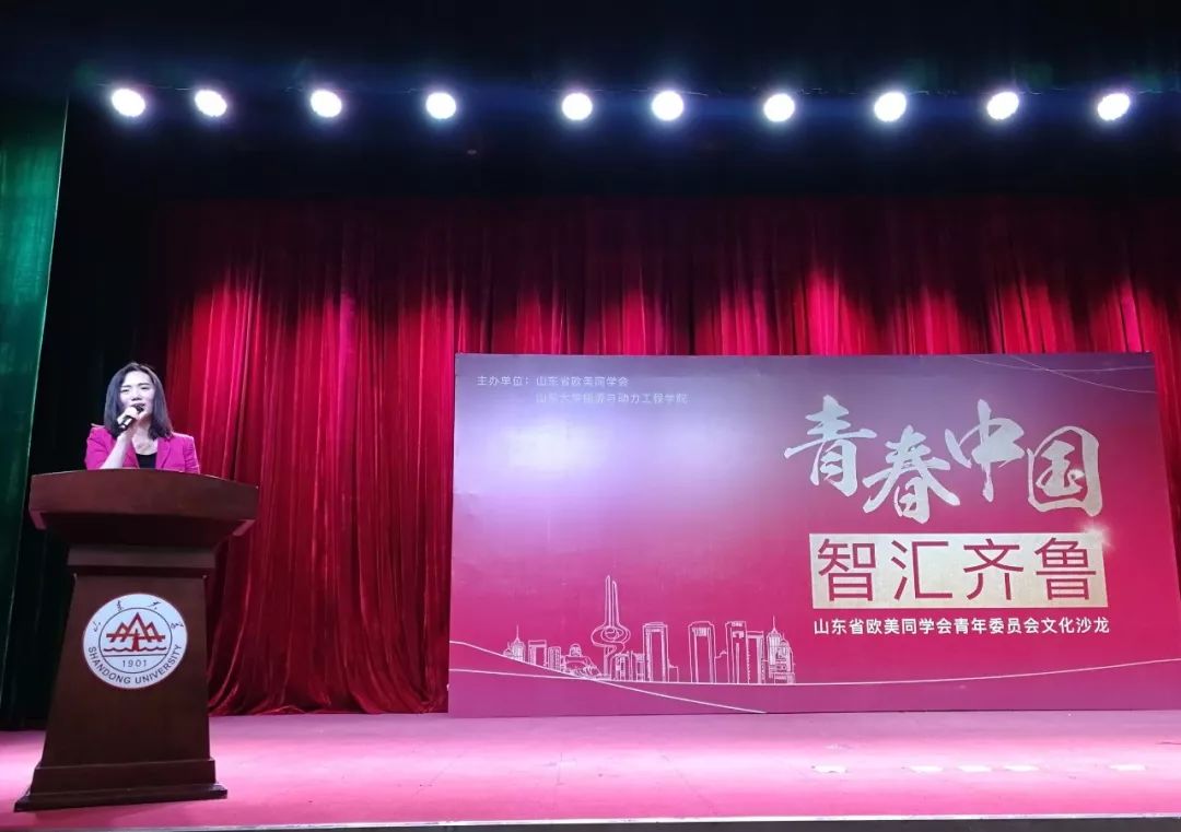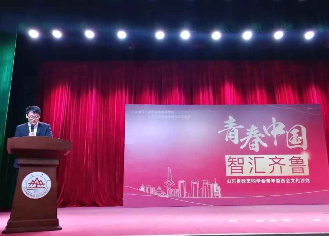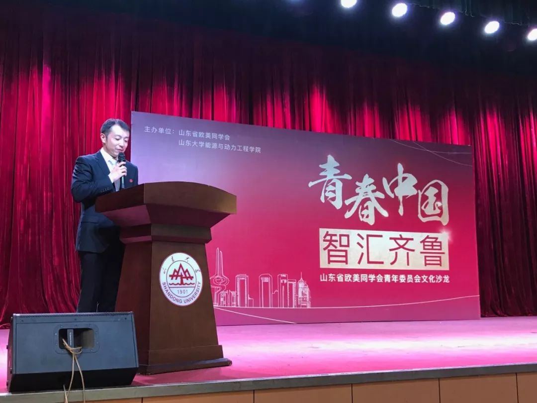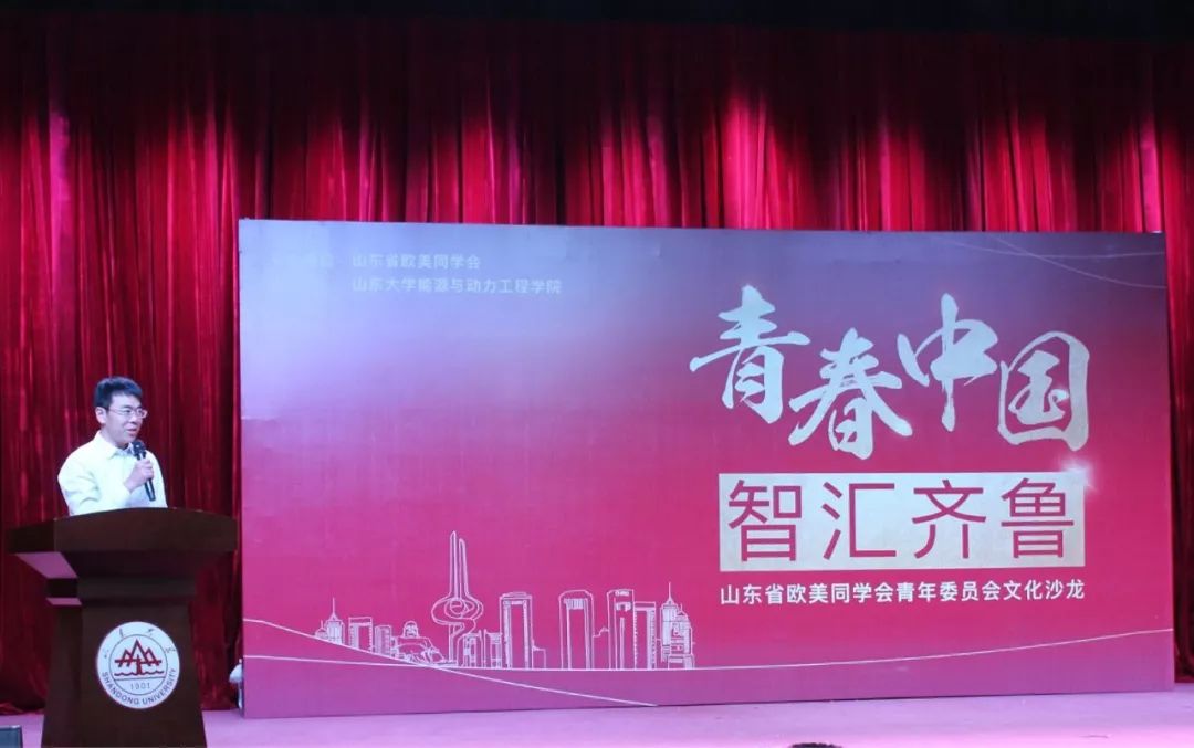 为庆祝五四青年节,2018年5月3日,由山东省欧美同学会、山东大学能源与动力工程学院主办,山东省欧美同学会青年委员会承办的“青春中国智汇齐鲁”文化沙龙在山东大学千佛山校区隆重召开。活动邀请山东省欧美同学会青年委员会成员与大家分享成长经历、交流求学体悟。