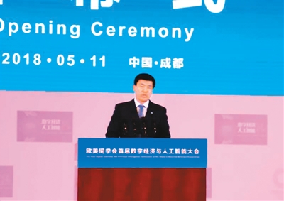 5月11日至13日,欧美同学会与成都市政府联合举办的首届数字经济与人工智能论坛在成都举办。图为论坛会场。