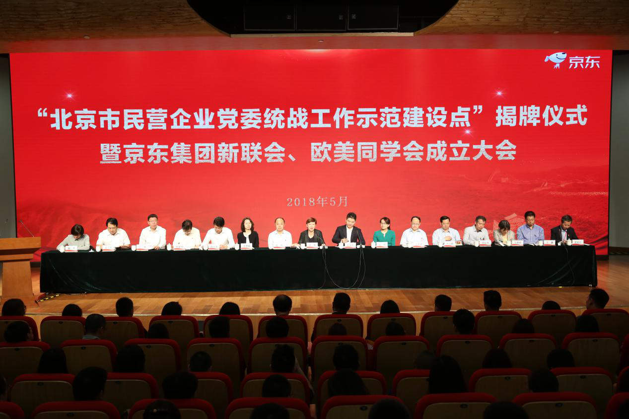 5月15日上午,北京市民营企业党委统战工作示范建设点揭牌仪式暨京东集团新的社会阶层人士联谊会、欧美同学会成立大会在北京京东集团总部举行。中共北京市委常委、统战部长齐静,中央统战部八局局长张明,欧美同学会(中国留学人员联谊会)党组书记、秘书长王丕君,中央统战部六局副局长吴茜,中央统战部五局副巡视员李慧敏,中国民间商会副会长、北京市工商联副主席、京东集团董事局主席兼首席执行官刘强东出席,大会由京东集团党委书记、副总裁龙宝正主持。北京市委副秘书长赵玉金,北京市委统战部副部长严卫群,北京市委社会工委副书记陈建领,北京市工商联党组副书记、副主席佘运高,北京欧美同学会秘书长王璞等出席大会。