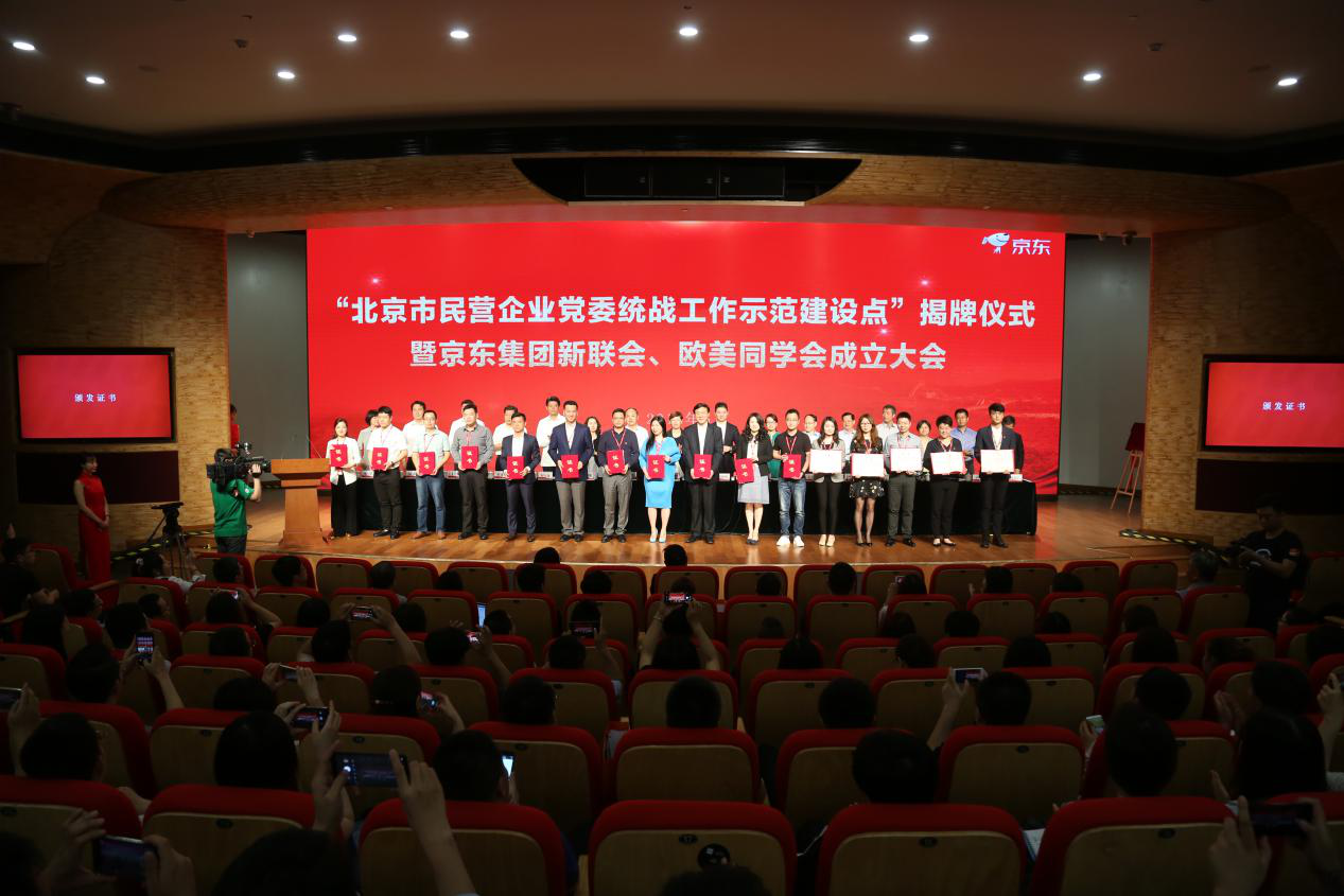 随后,齐静、刘强东共同为“北京市民营企业党委统战工作示范建设点”揭牌。