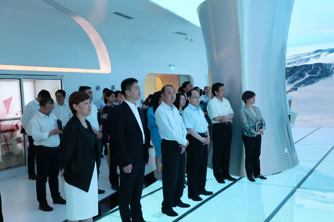仪式开始前,嘉宾们参观了京东集团党建工作展和智能办公区。