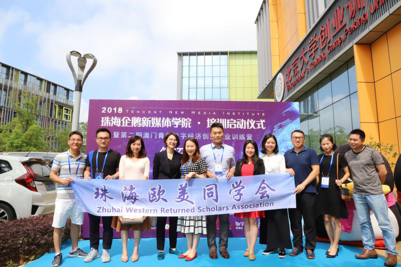 为助力归国留学人员创新创业,促进留学人员之间及留学人员与粤港澳大湾区青年之间的学术交流,助力粤港澳大湾区建设,服务创新驱动战略,推动新时代珠海“二次创业”,5月12日,珠海留学人员联谊会·珠海欧美同学会(下面简称“珠海欧美同学会”)在横琴青年创业谷参加了由横琴发展有限责任公司指导,腾讯大粤网、北京大学创业训练营主办,珠海欧美同学会常务理事单位珠海横琴跨境说网络科技有限公司协办的“2018珠海企鹅新媒体学院培训启动仪式暨第二期澳门青年数字经济创业就业培训营”。