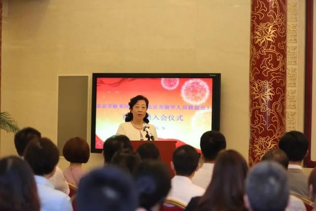 首批新会员入会仪式上,北京市欧美同学会会长闫傲霜讲话