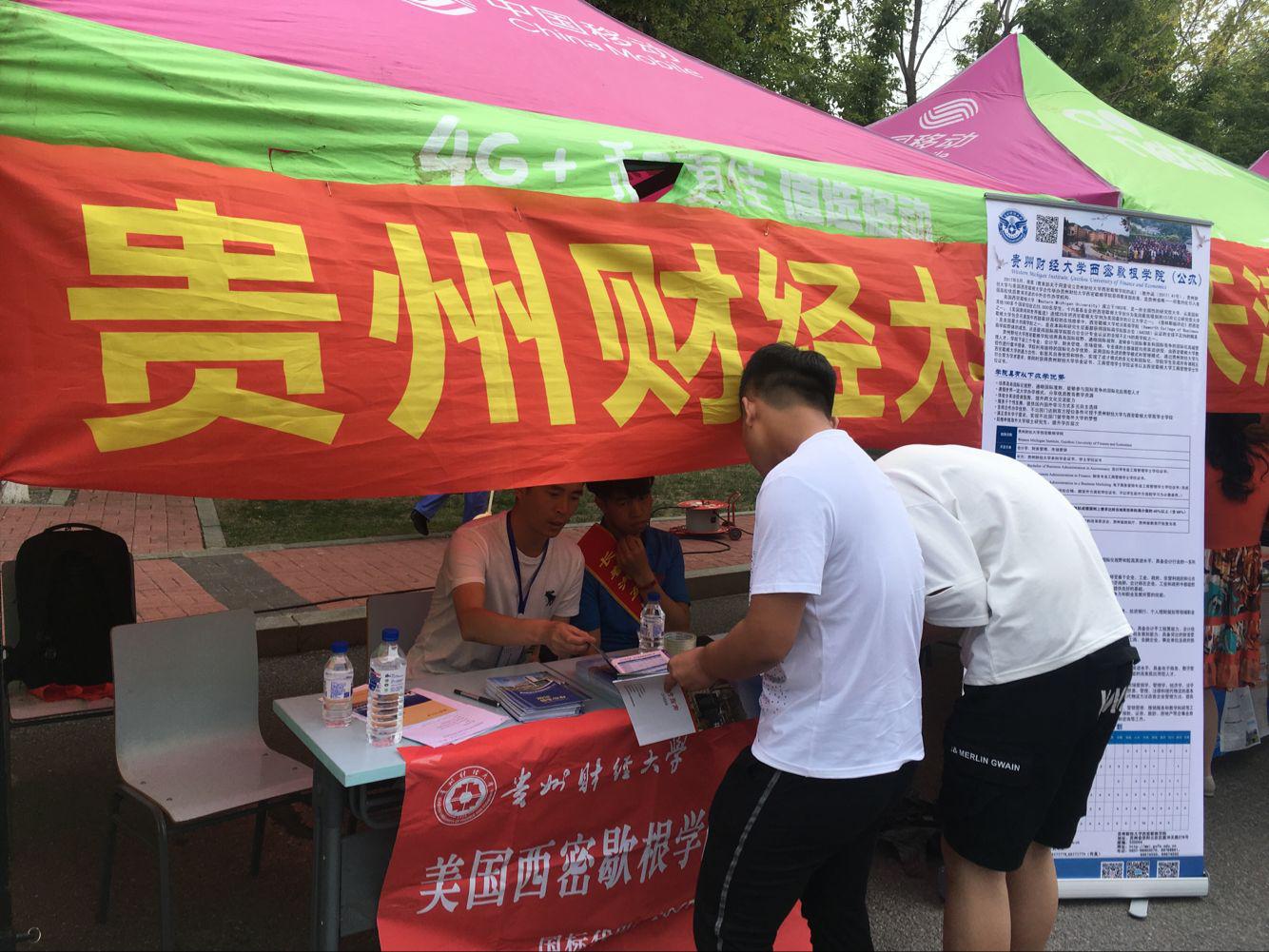 2018年6月22日至25日,贵州财经大学欧美同学会(留学人员联谊会)成员张钰卿、向媛、兰大卫、宋婷婷、谢俊等一行,分两组赴吉林、河南,开展2018招生宣传。每个宣传组分别与当地招生考试院交流,与考生家长面对面交谈,讲解有关招生事项,重点宣讲贵州财经大学校情、财经大学“大类招生、分流培养”举措、本科教学改革成效、国际合作办学项目及相关情况,特别是向省外学子宣传财经大学国际化办学特色项目--西密歇根学院,取得了较好的宣传成效。