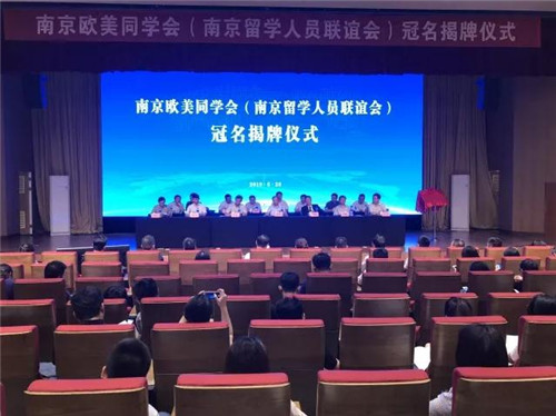 随后,在三江报告厅,召开南京欧美同学会(南京留学人员联谊会)冠名揭牌仪式。欧美同学会副会长夏颖奇致辞,郭万林发表感言,李永胜最后提出希望。包括近70名新的社会阶层人士在内的来自全市多个领域的海外留学归国人员近300人参加会议。