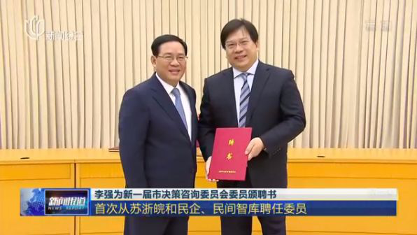 中央政治局委员、上海市委书记李强为沈坤荣院长等19位新一届市决咨委委员颁发聘书。新一届上海决策咨询委员会的委员由各自领域的专家组成,旨在通过发挥各位委员决策咨询作用,提供前沿视角和对策建议,从而提升上海城市能级和核心竞争力,更好参与全球合作竞争。