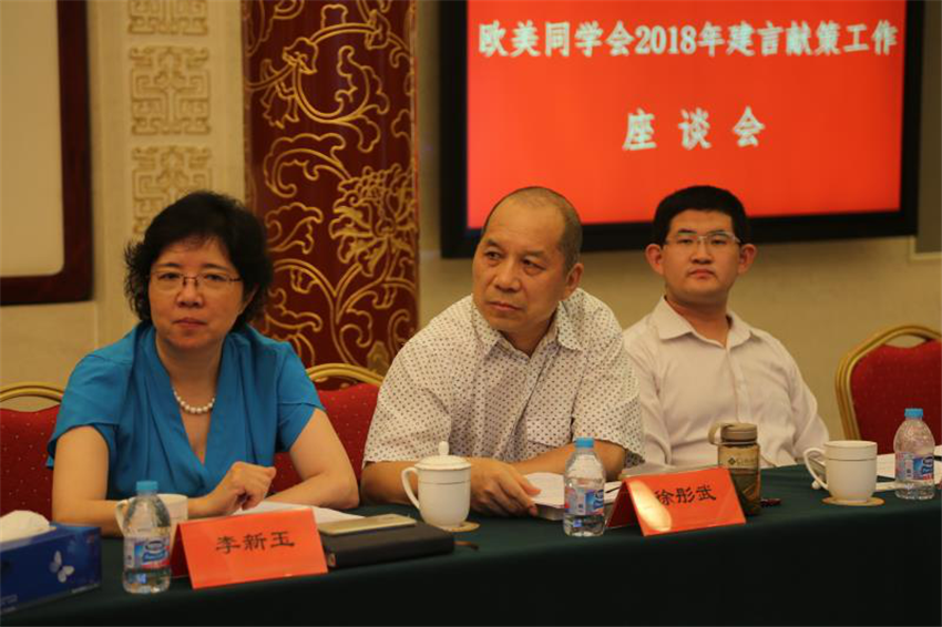 与会者充分肯定了一年来在新一届党组的领导下,欧美同学会在完善建言献策工作机制,创新性开展智库建设所作出的积极努力,并围绕会议议题提出具体建议。北京华夏人才研究院院长陶庆华,广州欧美同学会常务理事、广东财经大学工商管理学院教授马建会建议,我会课题可更加关注区域发展研究,如“一带一路”沿线国家的东亚、东盟、澜湄问题研究,粤港澳大湾区建设和乡村振兴战略研究;中国人民对外友好协会国际友好城市交流中心主任李新玉、中央党校教授孙劲松建议,以改革开放40周年为契机,组织相关活动和课题研究;中科院科技战略研究院研究员谭显春表示愿意积极支持欧美同学会工作,可以参与在德国举办的中德科技论坛相关工作;广州欧美同学会代表表示要积极配合总会工作,希望在广州举办相关论坛活动。