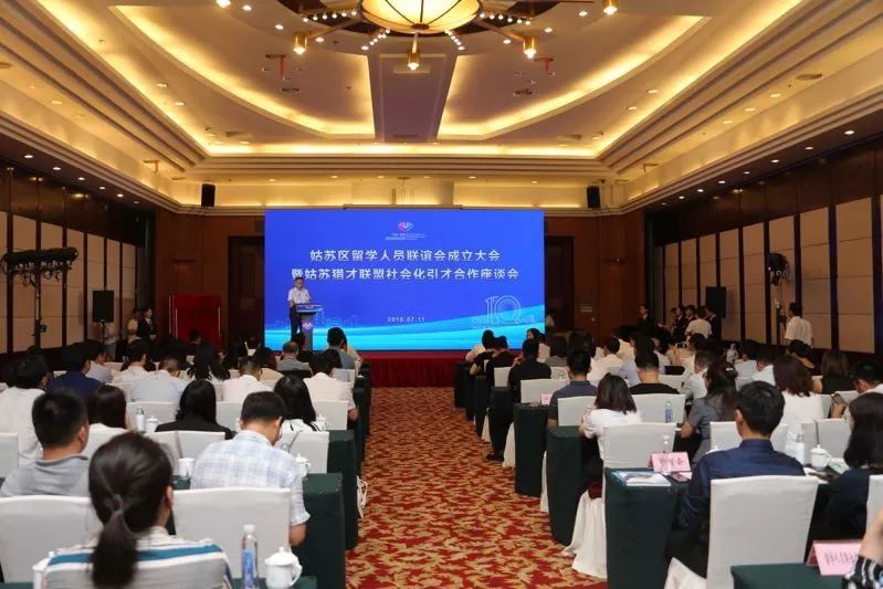 7月11日,姑苏区留学人员联谊会(苏州市欧美同学会姑苏分会)成立大会暨姑苏区猎才联盟社会化引才合作座谈会在市会议中心举行。