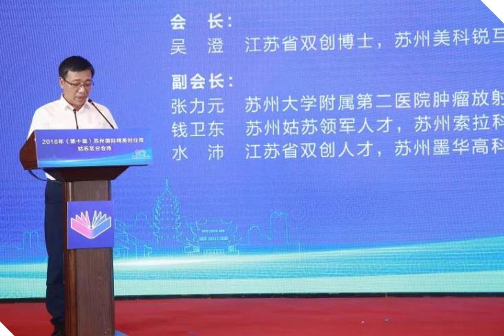 姑苏区委常委、副区长张文彪对苏州白鹭紫荆科技产业园运营有限公司、江苏中科院育成科技服务中心有限公司等2018年姑苏区创新创业人才项目社会化引进合作单位进行了授牌。