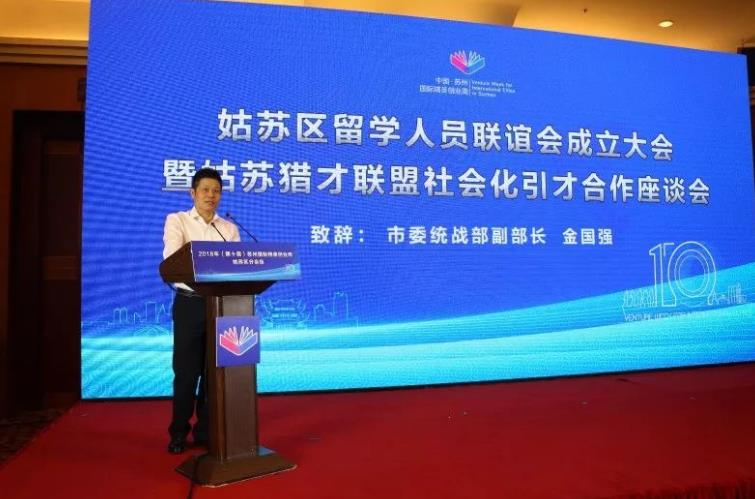 市委统战部副部长金国强在致辞时表示,姑苏区留学人员联谊会(苏州市欧美同学会姑苏分会)的成立,是姑苏区委、区政府学习贯彻习近平新时代中国特色社会主义思想和党的十九大精神的实际举措,为进一步推动姑苏区乃至苏州留学人员工作的开展提供了更加坚实的组织保障。联谊会的成立必将进一步助推姑苏区创新高地建设,进一步推动姑苏区留学人员服务地方经济社会高质量发展。