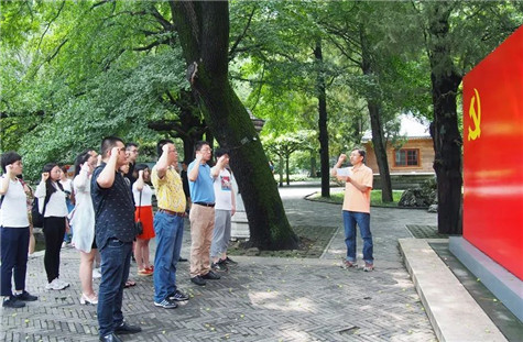 参加活动的中共党员还在双清别墅前重温入党誓词,不忘入党初心。