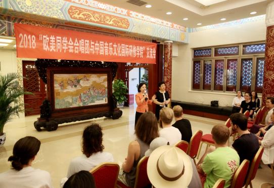2018年7月19日,欧美同学会(中国留学人员联谊会)的四合院里迎来了一群特殊的客人,他们是来自美国、加拿大、丹麦、肯尼亚、罗马尼亚5个国家8所音乐专业院校及综合类大学的50多名外国师生。欧美同学会合唱团的各位学长和国际友人一起展开艺术交流,大家济济一堂,共赴欧美同学会合唱团与中国文化音乐研修院的交流会。