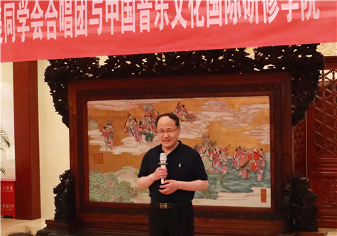 欧美同学会党组书记、秘书长王丕君受邀致欢迎辞,欢迎远方的朋友和欧美同学会合唱团的各位学长来到欧美同学会这个百年之地,通过音乐进行交流和沟通。王丕君现场表示,在2018年底之前将成立欧美同学会海归艺术家委员会,以更好地组织海归艺术家展示各自才艺,同时促进海归艺术家开展国内外文化艺术交流。王丕君谈到自己也很喜欢音乐,还诙谐幽默地讲述自己有关音乐的趣事,活跃了现场的气氛。