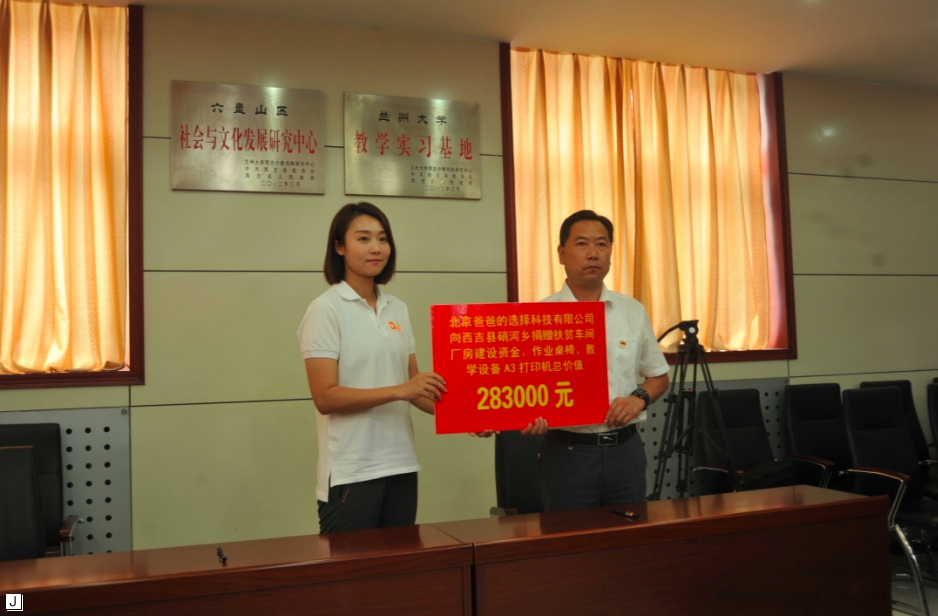 8月10日,欧美同学会(中国留学人员联谊会)凝聚海归人才助力西吉县脱贫攻坚座谈会在西吉县会议中心会议室举行。图为北京爸爸的选择科技有限公司为硝河乡捐赠扶贫车间厂房建设资金。新华社瞭望智库记者申仓摄