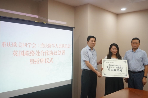 9月4日,重庆欧美同学会(重庆留学人员联谊会)举行英国联络处合作协议签署暨授牌仪式,标志着重庆欧美同学会(重庆留学人员联谊会)面向海外学人开展综合服务迈出了实质性的步伐,重庆留学人员统战工作向国门外走出了第一步。