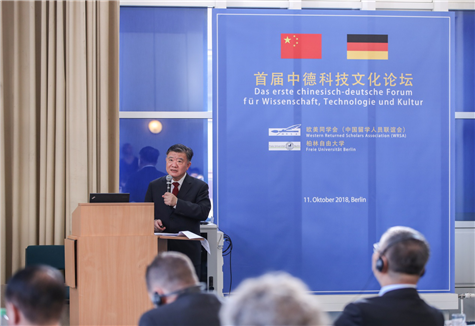 10月11日,欧美同学会(中国留学人员联谊会)“首届中德科技文化论坛”在德国柏林召开。全国人大常委会副委员长、欧美同学会会长陈竺,中国驻德国大使馆临时代办张军辉、德国联邦食品与农业部部长特别顾问雷恩纳•吉斯宇贝尔,柏林州议会议员、柏林前市长、柏林州前内务部长弗兰克•汉高出席论坛并致辞。与会嘉宾就中德科技文化合作、“一带一路”和“人类命运共同体”等问题进行了深入交流。德国国务秘书等在议会大厦会见了陈竺等代表团一行,并认为举办科技文化论坛对促进两国经济科技文化交流与合作很有意义。