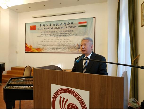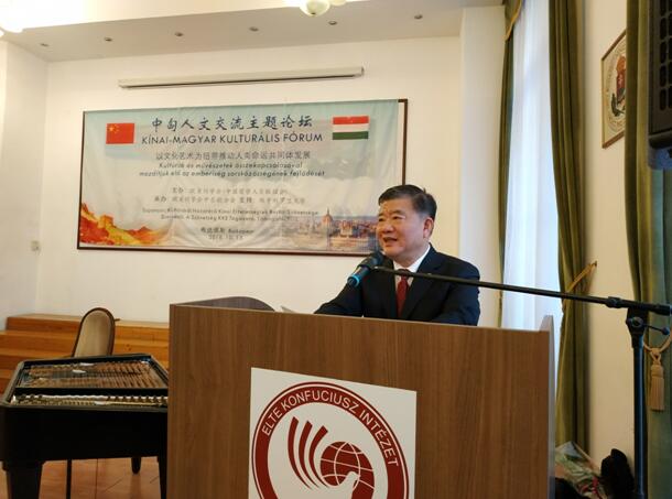 中匈人文交流论坛主题是“以文化艺术为纽带推动人类共同体发展”。中国驻匈牙利大使段洁龙,欧美同学会党组书记、秘书长王丕君,中国外交部中国与中东欧关系特别代表霍玉珍,欧美同学会副会长、中东欧分会会长刘月宁教授,匈牙利人力资源部中国事务高级顾问钦德尔·顿黛,匈牙利罗兰大学副校长郝清新等出席论坛。