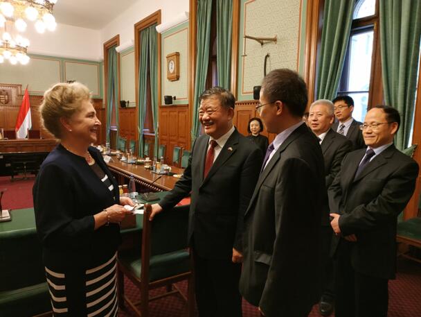 访问期间,陈竺会长一行在匈牙利国会大厦会见了匈牙利国会第一副主席马特拉·马丽娅女士,段洁龙大使等陪同。双方就中匈关系,特别是人文交流问题进行了友好会谈。