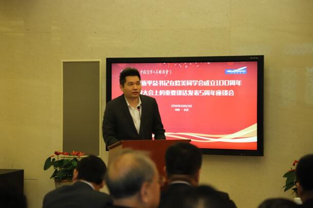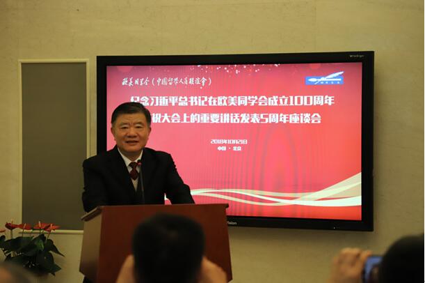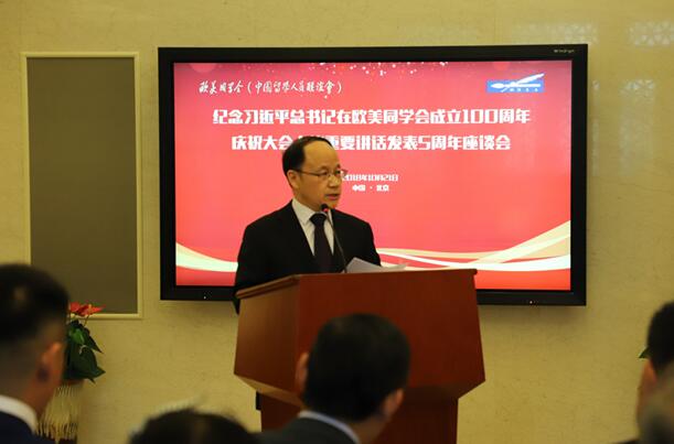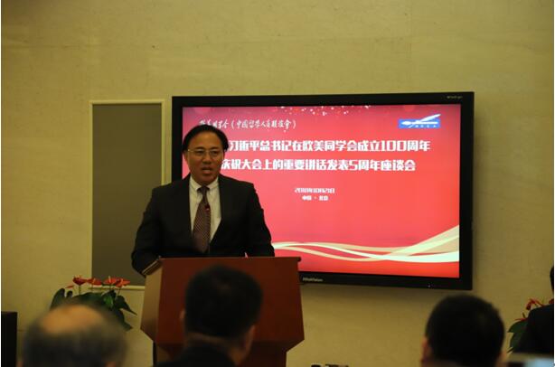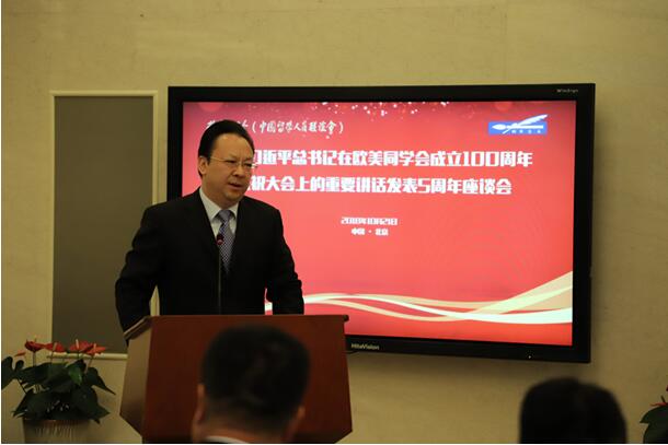 座谈会上,欧美同学会(中国留学人员联谊会)党组书记、秘书长王丕君介绍了五年来全会上下贯彻落实习近平总书记重要讲话精神,在成为留学报国的人才库、建言献策的智囊团、开展民间外交的生力军方面取得的新进展和新成绩。
