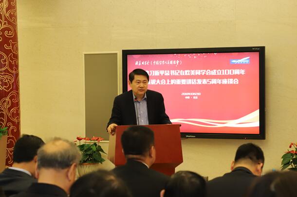 陈竺会长发表重要讲话指出,习近平总书记在欧美同学会成立100周年庆祝大会上的重要讲话,从党和国家全局的高度充分肯定了广大留学人员在我国革命建设和改革开放事业中做出的突出贡献,深刻分析了国际人才竞争背景下我国留学人员工作面临的新形势,首次提出了要努力成为留学报国的人才库、建言献策的智囊团、开展民间外交的生力军的明确任务。