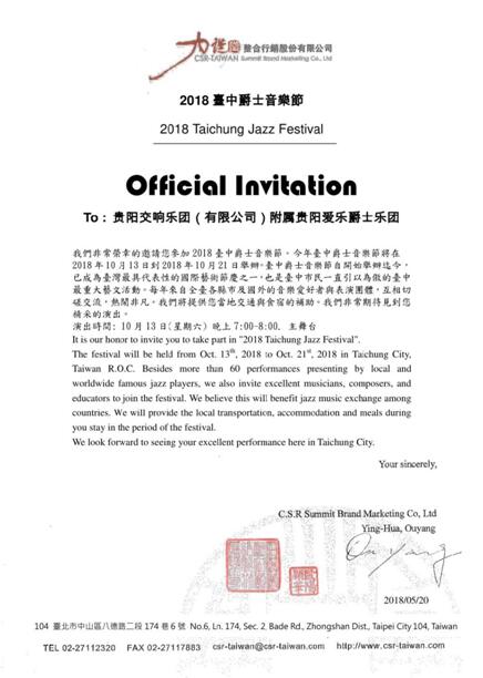 近日,受台中爵士音乐节组委会的邀请,贵州留学人员联谊会会员、贵阳学院吕宇坤副教授作为贵阳爱乐爵士乐团萨克斯管首席,携其两位学生和乐团其他演奏家共赴台湾执演台中爵士音乐节揭幕音乐会。在揭幕音乐会上,与4万名音乐爱好者一起拉开音乐节序幕。