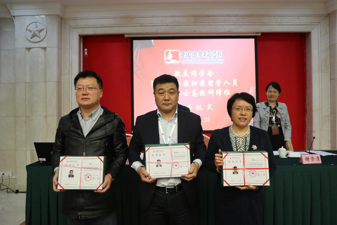11月23日,由欧美同学会(中国留学人员联谊会)组织的第十期全国归国留学人员代表人士高级研修班在上海浦东干部学院举行结业仪式,欧美同学会党组书记、秘书长王丕君出席结业仪式。