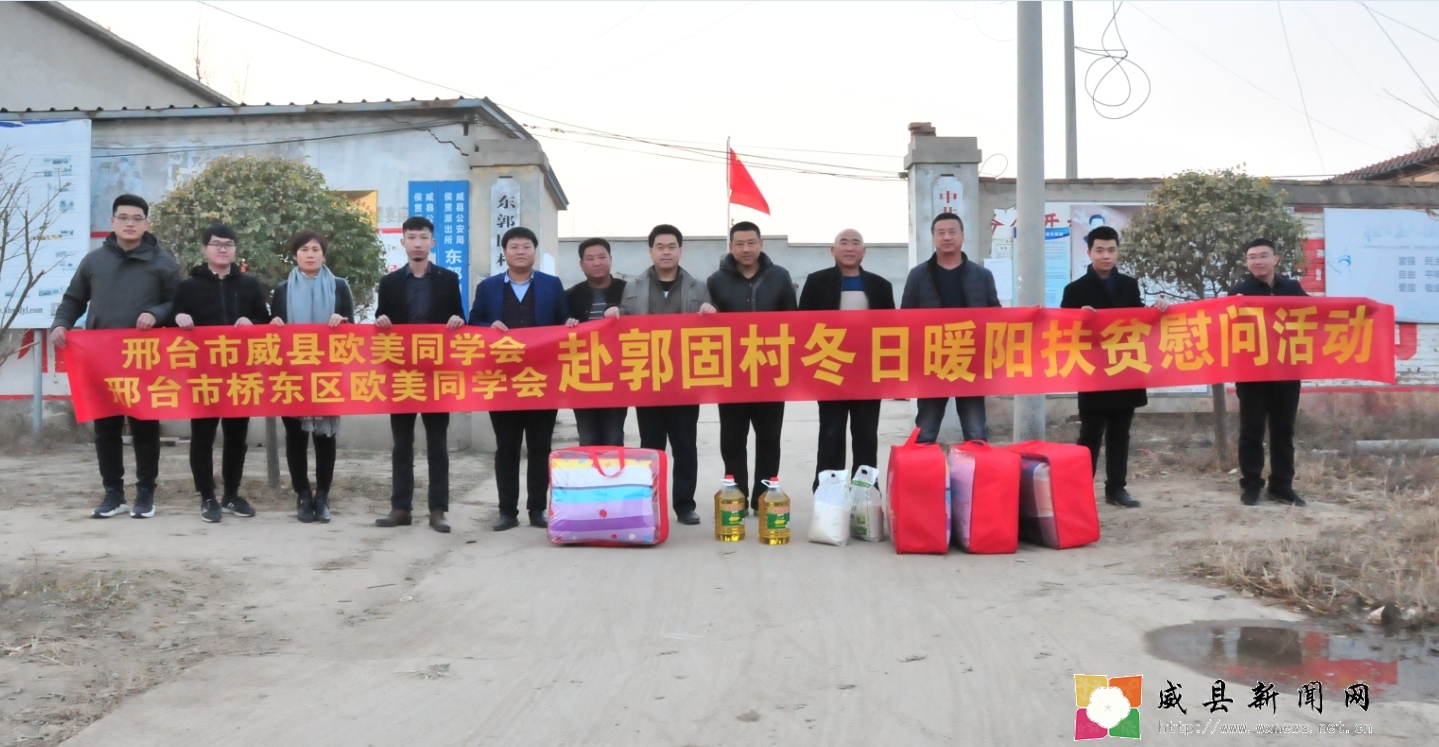 威县新闻网11月23日讯(吕建丛 王培培)11月22日,威县候贯镇东郭固村扶贫工作队联合邢台桥东区欧美同学会、威县欧美同学会,在威县候贯镇东郭固村开展“冬日暖阳”扶贫慰问活动。