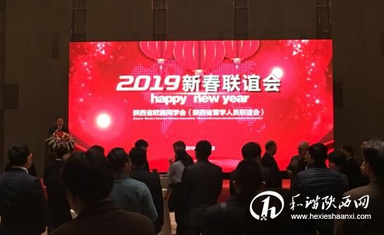 1月18日晚,陕西省欧美同学会(省留学人员联谊会)2019年新春联谊会在西安隆重举行。来自15个国家(地区)、1个国际组织的40余位驻西安总领事馆总领事和代表,省委、省政府、部分群团组织有关领导,省欧美同学会理事,西安市和有关高校留学人员联谊组织的代表,共计150余位中外嘉宾欢聚一堂,喜迎新春。