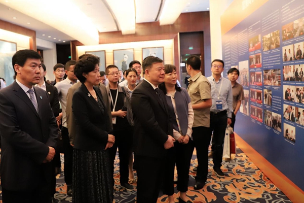 助力脱贫攻坚工作会议召开期间,陈竺会长观看欧美同学会脱贫攻坚最新成果展。