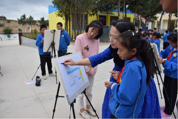 2018年9月14日,盖婧学长在渭源县北寨镇建立的齐鲁名师工作站的苏美荣老师在做美术学科专题培训。