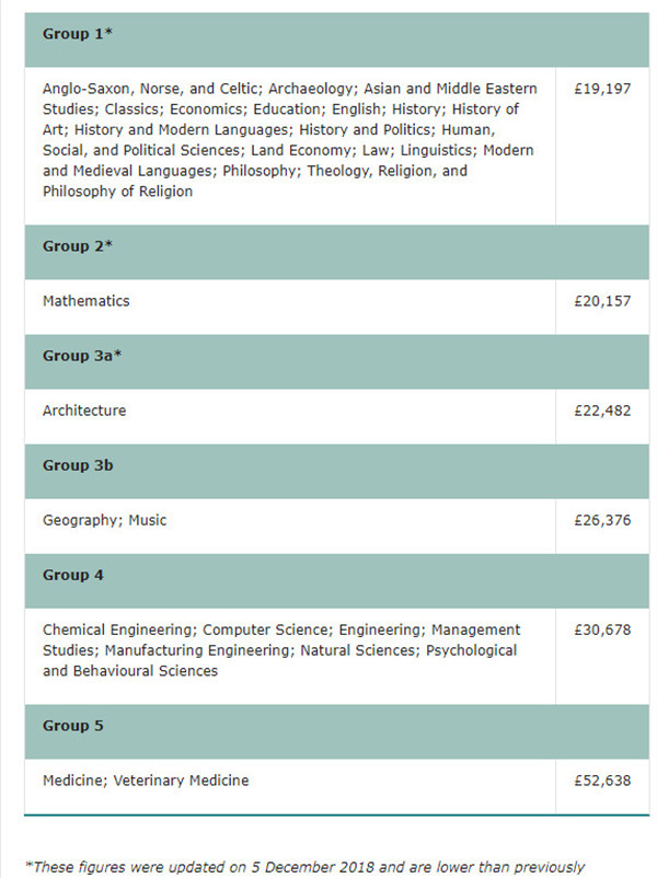 首先我们介绍一下世界顶级名校剑桥大学,上图所示是剑桥大学2019年度秋季入学的学费情况,以数学专业为例,学费为每年20157镑,折合人民币约18万,而计算机、工程类理工科专业则达到了每年30678镑,折合人民币约27万多。