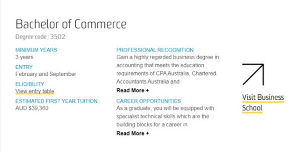 八大中另一所深受学生们喜爱的昆士兰大学的本科阶段学费近几年也呈缓慢上涨趋势。昆士兰大学的商学院颇负盛名,为澳大利亚第一所获得AACSB认证的大学商学院,亦获EQUIS认证,并且被澳大利亚管理毕业生协会(GMAA)评鉴为满分五星,如此优秀的商科专业本科阶段第一年的学费约为41600澳币,折合人民币约为20万,而计算机科学和工程类等需要用到实验室等专业设备的理工类专业的学费则在此基础上稍微贵一些,第一年学费约为42768澳币,折合人民币约为21-22万。