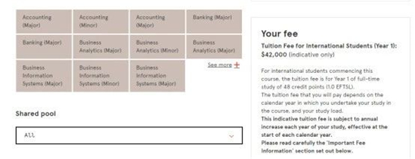 首先我们以始建于1853年,2019年QS世界排名第39,坐落于澳大利亚文化、艺术与工业中心墨尔本市的综合研究型大学-墨尔本大学为例,其会计、经济等最热门的商科专业本科一年的学费约为42784澳币;计算机、工程类专业学费为43008澳币;数学与统计等专业学费为41728澳币,折合人民币都约为21-22万。而教育、人文和社会科学等文科专业第一年学费约为32512澳币,折合人民币为15.5万元,差距还是比较大的。