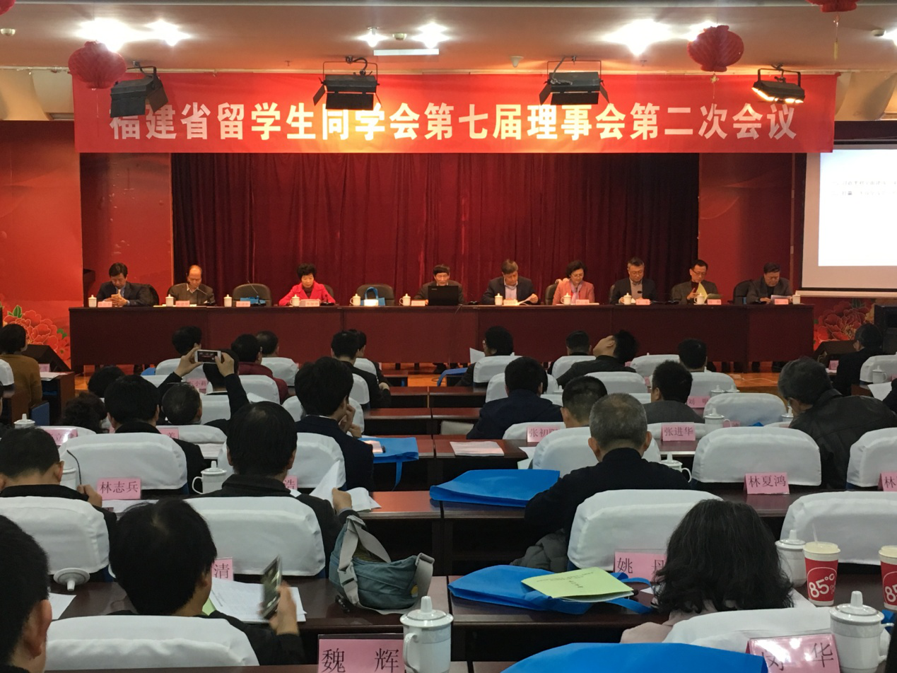 3月1日福建省留学生同学会·福建留学人员联谊会在福州召开第七届理事会第二次会议。欧美同学会副会长、福建省留学生同学会会长郑传芳,副会长杨辉、陈昌生、李珊珊、詹心丽、游建胜、王非、林建华、郑健、陈忠苏,秘书长陈安及120余名理事出席会议。林建华副会长主持会议。