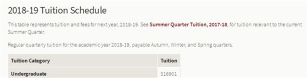 我们先以以顶级藤校斯坦福大学为例,加州学校大部分都是quarter制度,一个quarter是10周,所有本科专业学费都一样,一年3个quarter,分别为春季、秋季和冬季,暑假可选择上或不上。2018-19学年一季度的学费为16901美元,一年的学费为50703美元,合人民币约35万,而2019-2020年学费可能还会有增长。