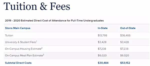 涅狄格大学是一所美国顶尖、世界著名的老牌公立研究型大学,2019年QS世界排名中位列373名。该校被连续11年评选为美国新英格兰地区最顶尖的大学之一。在学费方面,大学针对国际生2019-2020学年一年的预估金额为36466美元,合人民币约25万,比上述学校便宜一些,如果把学生费以及食宿费也算上的话,预计为53152美元,折合人民币为36万多,算是美国前100学校的中等水平。