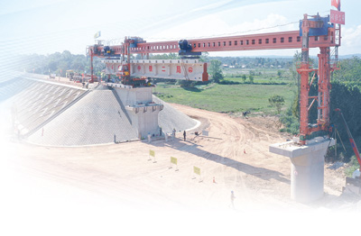 2018年12月2日,中老铁路首片简支T梁在老挝首都万象市成功架设,标志着中老铁路建设工作由线下施工转为线上施工。本报记者 赵益普摄