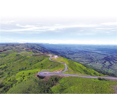 坦桑尼亚的姆贝亚—卢万吉罗公路是该国境内海拔最高的公路,平均海拔高度在2000米以上。该公路项目由中国路桥工程有限责任公司承建。图为2017年4月3日航拍的姆贝亚—卢万吉罗公路。史 跃摄