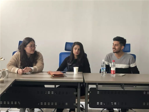 王超艺学长、MAHRUKH AWAIS、 AHMAD KARIM KHAN分别就中外文化特色、国外生活学习经历、研学项目以及如何提高英语口语能力、技巧等方面主题与同学们用英语进行了交流。
