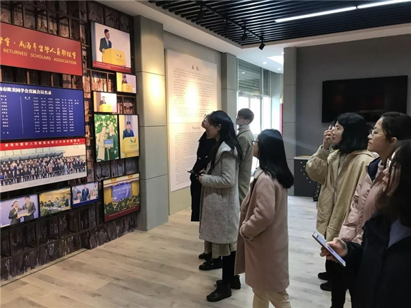 同学们在秘书处工作人员的带领下,还参观了威海市欧美同学会会史馆及留学服务中心,了解了欧美同学会的性质、其百余年的发展历史及威海市欧美同学会面向社会推出的一系列社会公益服务。