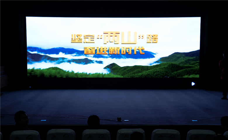 2019年4月11日,浙江安吉余村,欧美同学会留学人员代表观看“坚定‘两山’路 奋进新时代”专题纪录片。中国网 王月博摄