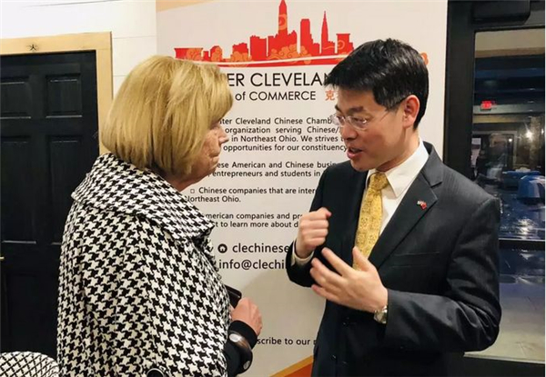 赵宇敏副总领事鼓励威海市欧美同学会美国工作站克利夫兰商会以中美建交40周年为契机,进一步发挥积极作用,推进和深化克利夫兰地区及俄亥俄州与中国在地方层面的交流,为中美经贸关系的健康稳定发展发挥建设性作用。