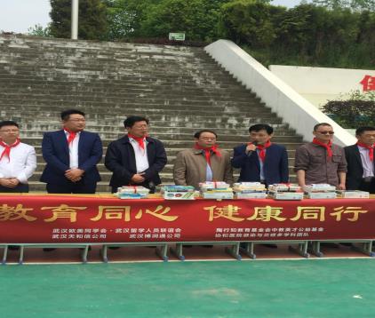 4月20日,由武汉欧美同学会·武汉留学人员联谊会联合陶行知教育基金会、华中科技大学附属协和医院等单位共同举办的“教育同心健康同行”主题活动在十棵松小学举办。本次活动共为学校捐赠教学设备、运功器材、书籍等价值10余万元的物资,同时还开展了健康义诊、公益讲堂等相关活动。武汉市委统战部副部长李林平,武汉欧美同学会副秘书长张敏,武汉市统战部联络处处长石朝晖等出席活动。