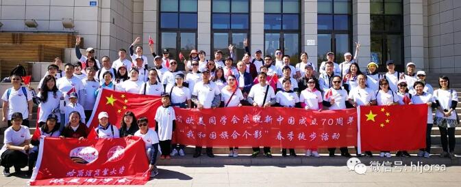 2019年4月27日上午,省欧美同学会在春光最盛的时节组织开展了“我和国旗合个影”春季徒步活动。活动全程从哈尔滨市人民广场到音乐广场,近100名会员参加了此次活动。