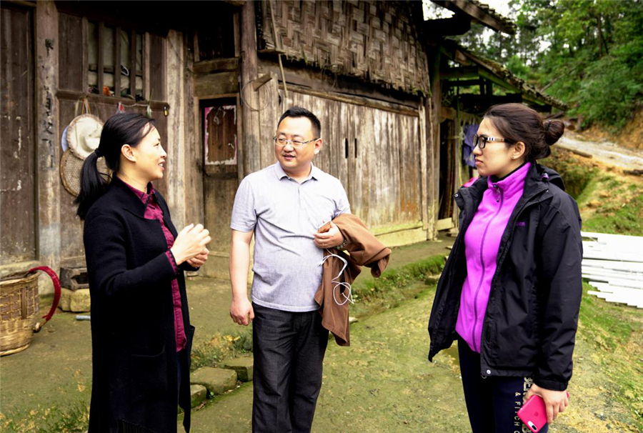 图为欧美同学会海归专家服务团成员向基层干部了解当地扶贫项目发展情况。