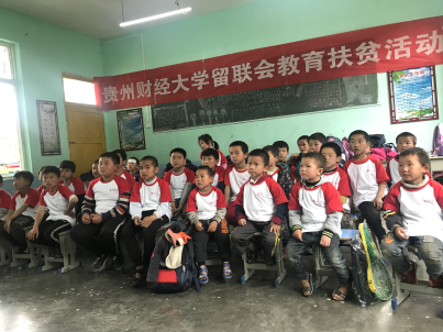 5月10日,贵州财经大学留学归国人员联谊会会长罗亚带领留学归国人员陈倩、张钰卿等老师一行,带着崭新的书包、学习用品来到台江县交下村交下小学看望贫困学生。实现愿望的孩子们眼里闪烁着喜悦,纷纷说道“新书包背上真漂亮”。