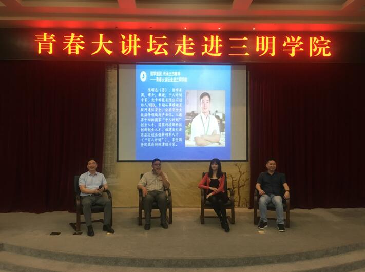 讲坛伊始,赖锦隆、张引、陈安分别致辞。随后,厦门市傲凡软件科技有限公司创始人、省留学生同学会青委会执行主任吕越峰,福建农林大学英语教师、福建省翻译协会会员池璇,千人计划专家、北卡科技有限公司创始人、CEO陈明志,三明学院信息工程学院主持工作副院长刘持标分别作《一个海归的中国梦》、《不负春光不负卿——交流青春梦想,弘扬中华文化》、《互联网通信安全的创新创业》、《献微薄之力报效祖国》等精彩演讲,为青年学子点燃了激情,鼓足了勇气,点拨了方向。演讲结束后,4位演讲者与在座师生现场互动,共同讨论成长路上的人生困惑,交流学习、工作和生活的看法和观点。