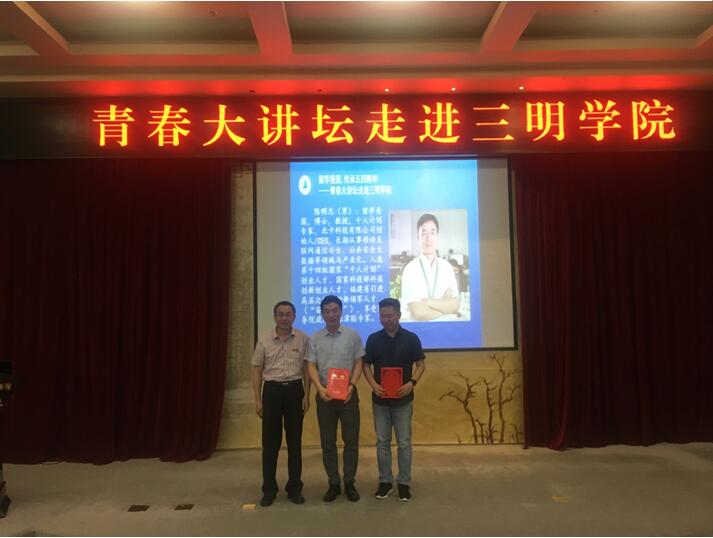 5月15日下午,由福建省留学生同学会主办的“留学报国,传承五四精神——青春大讲坛走进校园”活动在三明学院逸夫图书馆报告厅举行。省留学生同学会秘书长陈安,三明学院党委副书记赖锦隆、三明市委统战部副部长张引,三明市留学生同学会会长黄敏以及省市留学生同学会学长代表、在校师生代表共200多人参加了活动。