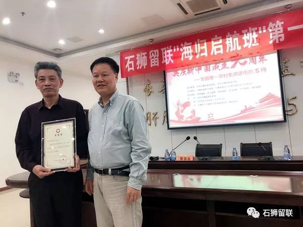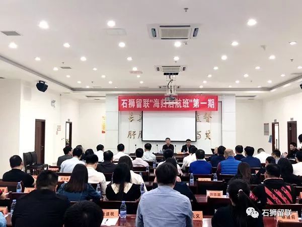 2019年5月11日下午,石狮留联开办全省第一个“海归启航班”,邀请石狮市原政协主席蔡志从授课。省留联秘书长陈安,市委常委、统战部部长林天虎,市委常委、宣传部部长廖春园,市委统战部副部长、工商联党组书记施剑峰,市委组织部副部长、老干局局长王汉滨,市委组织部副部长许宏图,市侨联主席董立新,市工商联常务副主席林新苗,统战系党委书记许新新,市科协主席陈垂汉,统战部副部长蔡连庭,灵秀镇党委秘书、统战委员李加勇,省青委会执行主任卢晓亮,省留联特聘指导员陆芳,石狮留联名誉会长王崇山,石狮留联创会会长姚道锡,会长刘德攀,党支部书记詹萍萍以及大泉州留学人员、各民主党派、企业家代表等70多人出席开班式。