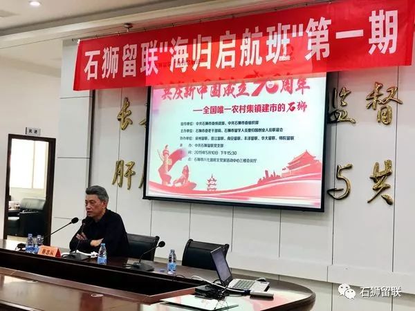 会议由石狮留联专职副秘书长蔡颖颖主持。课上,蔡志从先生为海归留学人员讲述石狮建市30多年的发展历程和取得的辉煌成就,并勉励海归留学人员要秉承“敢为天下先”的精神,不断开拓进取,为“创新转型、实业强市”贡献智慧和力量。